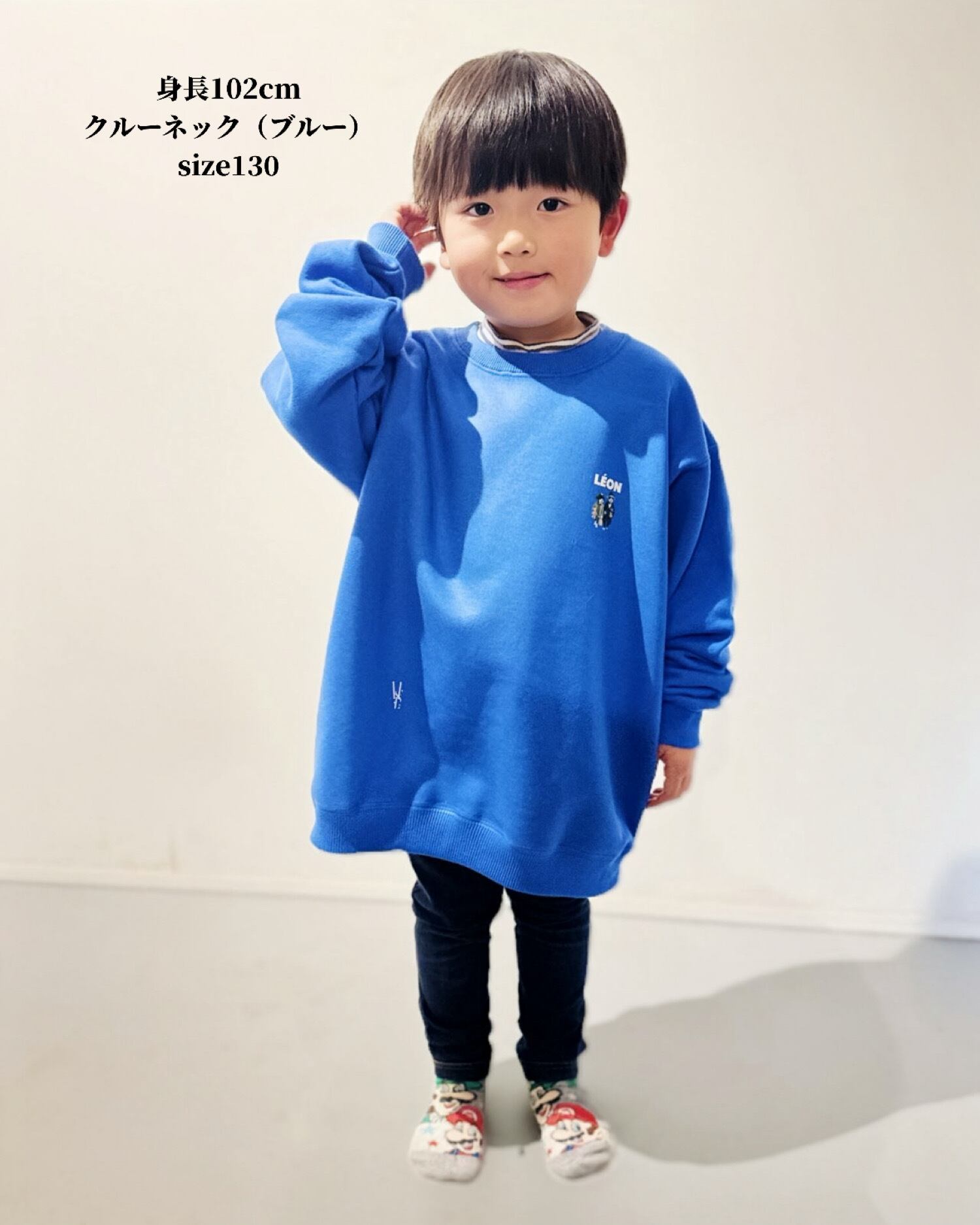 オーバーサイズの選んだ場合でも、チュニックやワンピースのように着ていただいても可愛いです。
