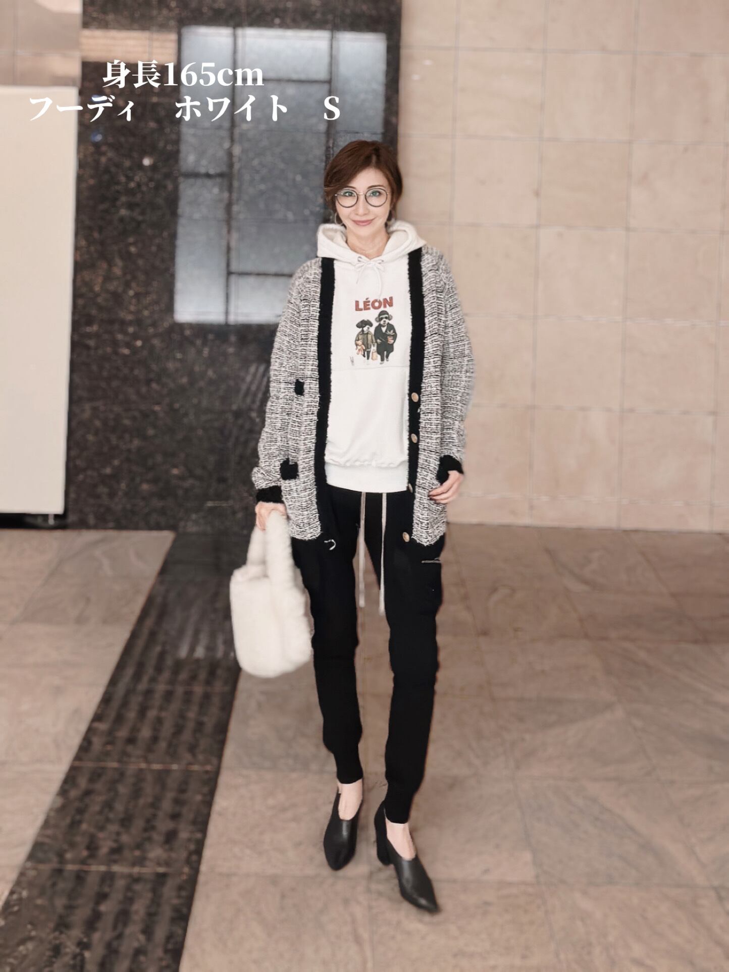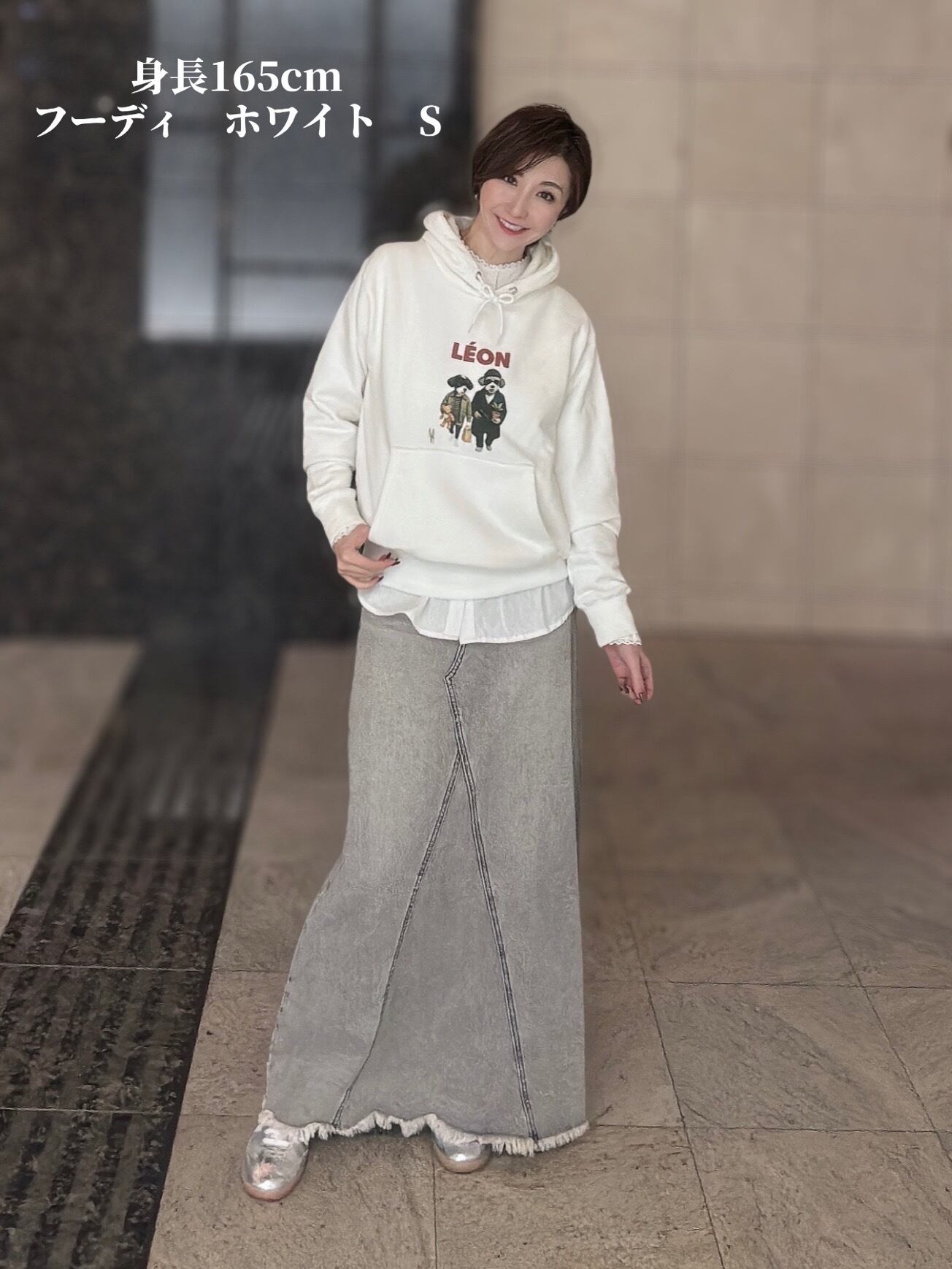 オーバーサイズの選んだ場合はボトムをタイトにしたり、ショート丈にする事でバランス良く着て頂けます。