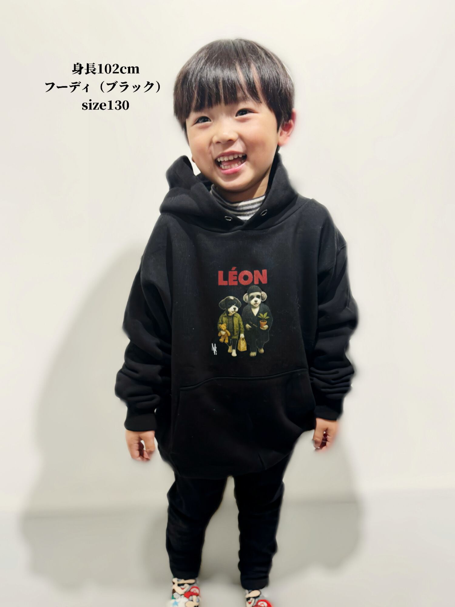 ※KIDSサイズは安全のためフードの紐はございません。